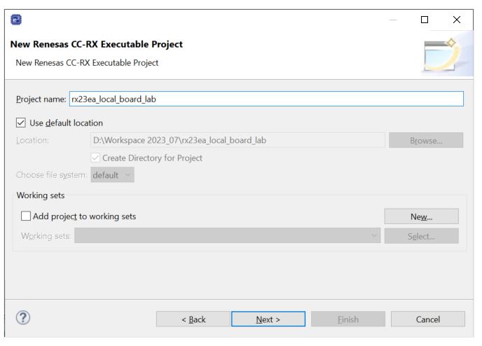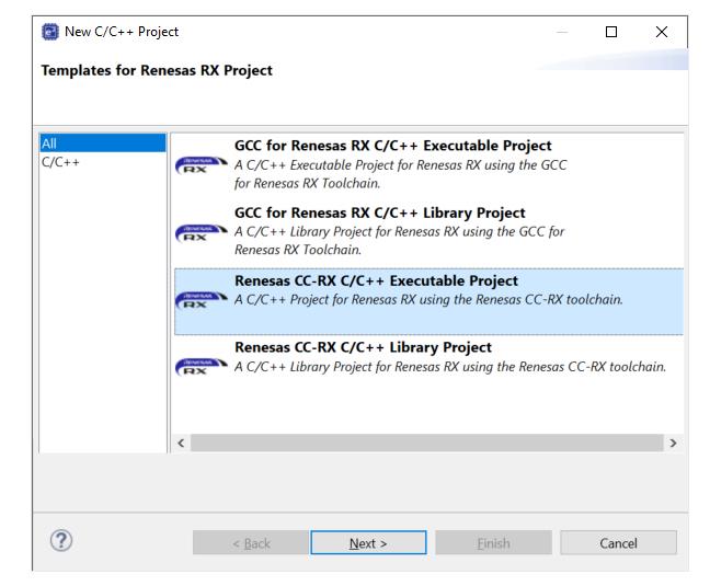 2.2 选择“Renesas CC-RX C/C++ Executable Project”,点击“Next“。