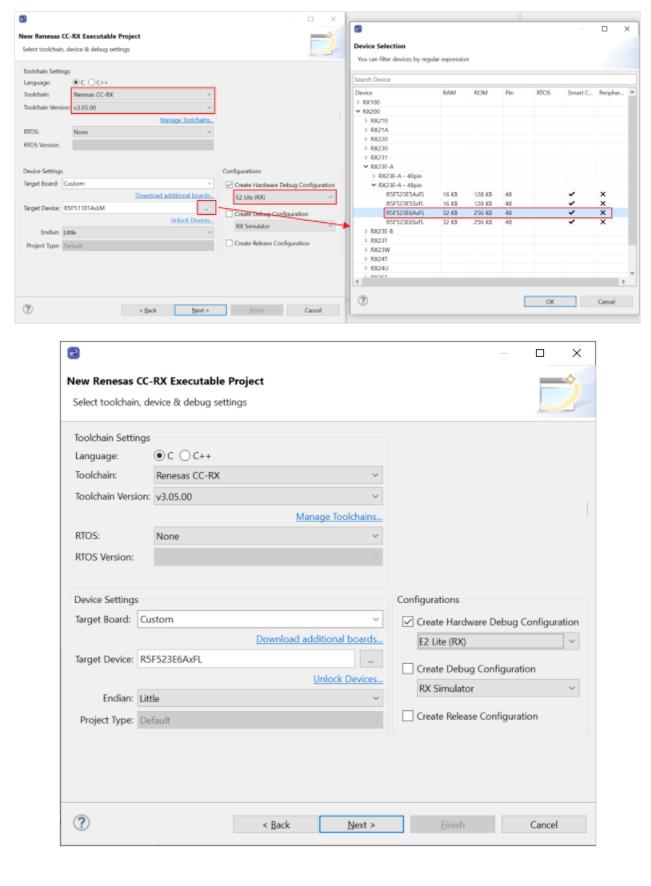 Device Setting:Target Device选择“R5F523E6AxFL”