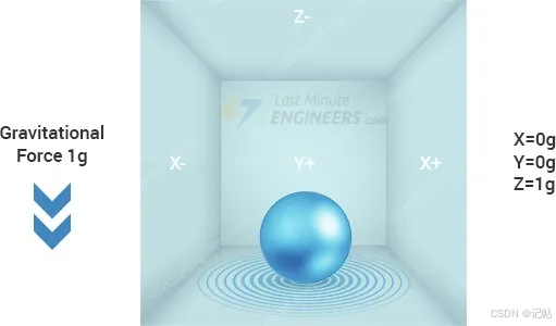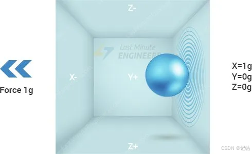 如果我们突然以 1g 的加速度向左移动盒子(单个 G 力 1g 相当于重力加速度 9.8 m/s 2),球无疑会撞到墙壁 X。如果我们测量球对墙壁施加的力X,我们可以得到沿X轴的输出值为1g。