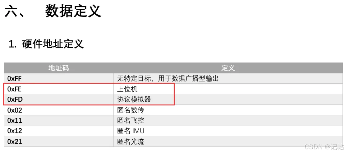 对应的源地址和目标地址分别为0xFD和0xFE。