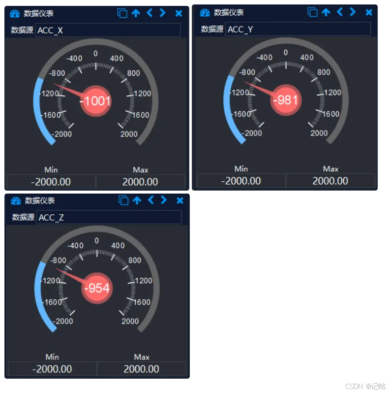 实测移动模块分别为X、Y、Z轴向下,可以看见数值基本上为1000mg。