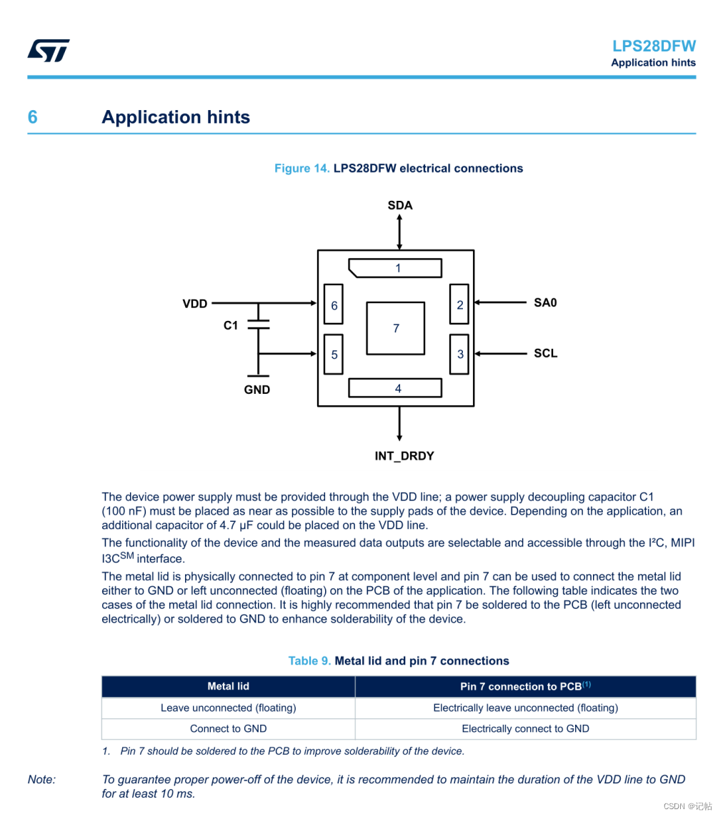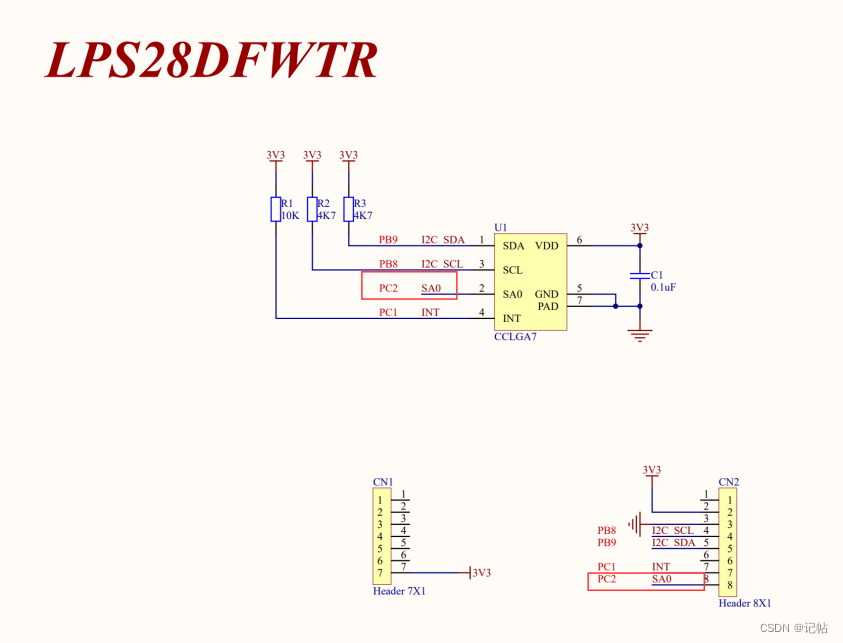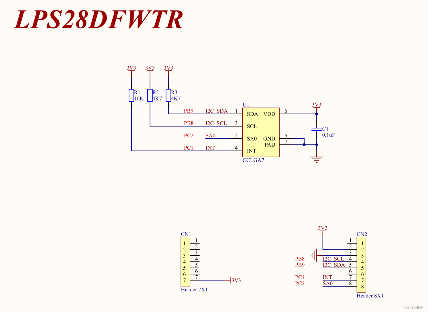 对于LPS28DFW,可以使用IIC进行通讯。 最小系统图如下所示。