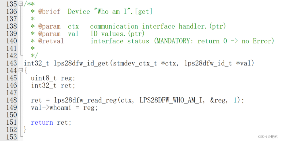 /* Check device ID */ lps28dfw_id_get(&dev_ctx, &id); printf("LPS28DFW_ID=0x%x,id.whoami=0x%xn",LPS28DFW_ID,id.whoami); if (id.whoami != LPS28DFW_ID) while(1);