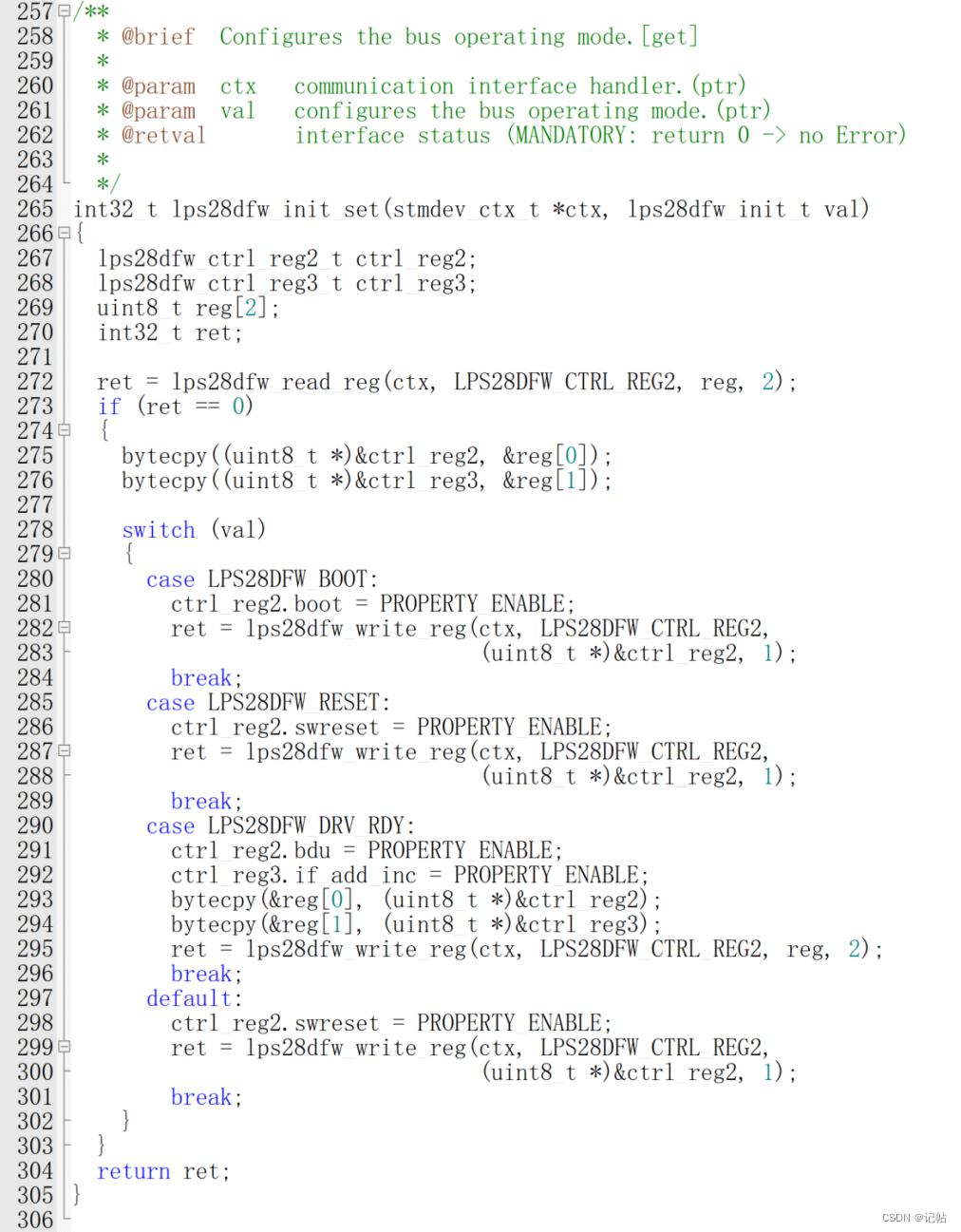 /* Set bdu and if_inc recommended for driver usage */ lps28dfw_init_set(&dev_ctx, LPS28DFW_DRV_RDY);