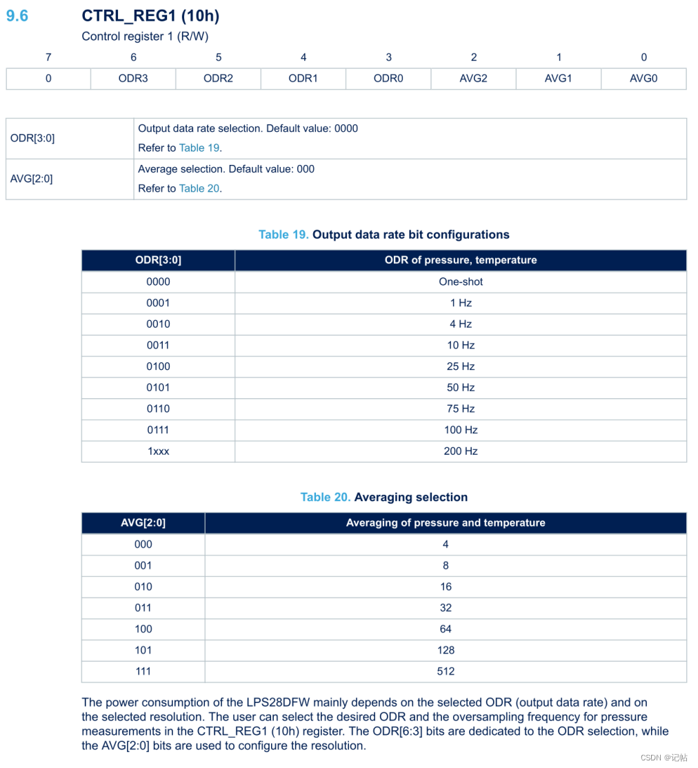 设置速率和量程可以通过CTRL_REG1 (10h)和CTRL_REG2 (11h)进行设置。