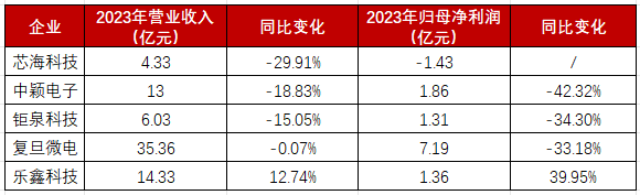 2023年,芯海科技实现营业收入4.33亿元,同比减少29.91%;归母净利润亏损1.43亿元。2023年芯海的低端消费类产品受到行业去库存压力影响,产品价格受到一定承压,导致毛利率下降、净利亏损。
