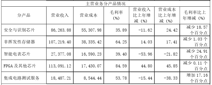 复旦微电主要拥有安全与识别产品线、非挥发存储器产品线、智能电表芯片产品线、FPGA及其他产品。其中智能电表芯片产品线主要包括智能电表MCU、通用低功耗MCU等。与钜泉科技同样是做智能电表MCU的复旦微电,业绩表现如何呢?