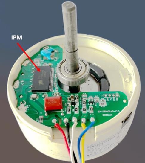 当所需的控制功率较大(例如10Kw或更大)时,控制芯片的尺寸和价格通常不是决定控制系统市场接受度的主要因素。但是,对于电机功率较低的应用,情况就不同了。例如,在数据中心服务器散热风扇应用中,这是一个很大的市场,单个电机控制芯片包含MCU、前驱动器和低功耗半导体,这使得在一个简单的印刷电路板上实现整个控制系统成为可能;请参见图 1 所示的示例。当应用需要几百到 1 Kw 的功率时,例如空调换气扇,可以使用带有 MCU、预驱动器和大功率 MOSFET 的 IPM(智能电源模块);请参见图 2 中的示例。在这两种应用中,控制器的尺寸和成本效益往往决定了产品在市场上的成败。就数量而言,低功率电机控制器的市场比大功率电机控制器大得多。因此,低功耗电机应用是推动电机控制芯片发展的主要市场,尤其是专用电机控制芯片。