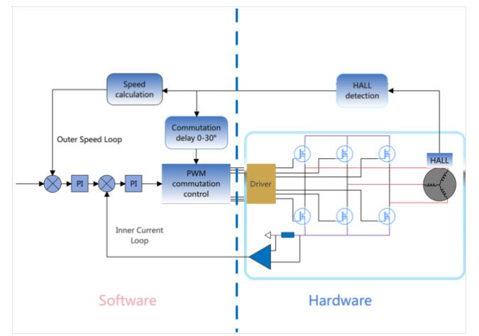 图3:带霍尔传感器的无刷直流电机控制框图