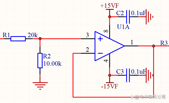 电压跟随器输出阻抗很低,相当于和后级电路短路。后级电路的输入电压值,等于电压跟随器输出端的电压值。