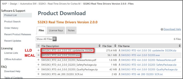 - 在 NXP 官网上找到“4_2.0.0”的 RTD 包,下载并安装(参考前文的第2.3和3.3章节)。其中 MCAL 是 exe 执行程序安装,而 LLD 则是 zip 格式作为 S32DS 的一个插件来安装,这是因为工具链不同。