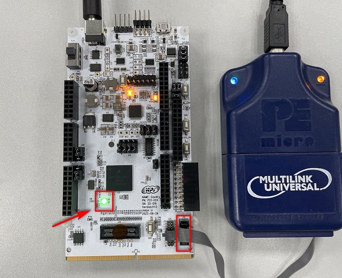 - 开发板上电,连接Multilink并烧录程序,可以看到 RGB LED 灯切换红、绿、蓝三色交替闪烁,程序烧录成功。