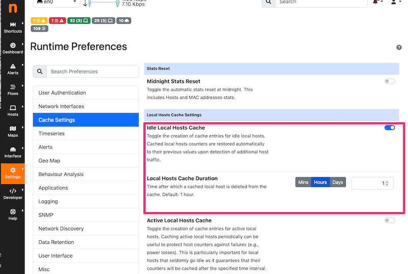 每个流都有两个老化计时器:空闲计时器(它跟踪自接收到最后一个流数据包以来已经过去了多少时间)和持续时间计时器(它记录流持续的时间)。当这两个老化定时器中的一个到期时,即当流空闲太长(例如,有一段时间没有接收到分组)或当流在流高速缓存中存储太长时,流结束。在nProbe和PF_RING FT中,当流过期时,它将从流缓存中删除并发送到收集器。相反,在ntopng中,从流缓存中删除流只是为了空闲,因为持久流不会从缓存中删除。原因是像nProbe这样的流量探测器需要定期向收集器(例如ntopng)报告有关监控流量的信息,因此流量会被“剪切”并发送到收集器。相反,在ntopng中,不需要通知收集器,因此只要在首选项中配置了必要的内容,流就会留在内存中。