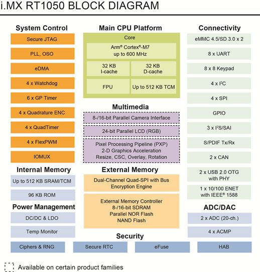 i.MX RT1052虽然采用了MCU内核,但基于应用处理器的架构方式,既能实现应用处理器的高性能和丰富功能,同时又兼具传统MCU的易用性和实时低功耗运行特性,填补高性能与易用性之间的空白。