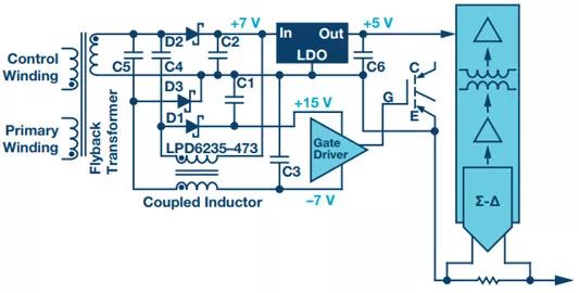 图4. 栅极驱动和电流反馈转换器的隔离电源电路