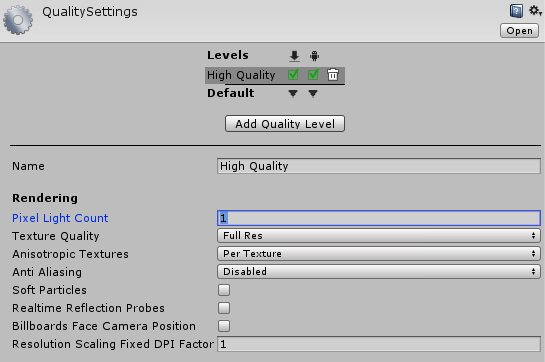 最普遍的优化方法之一就是降低每个像素点的光数量,允许的光数量将直接影响GPU的负载,因为场景内的每个对象都需要在不同的光情况下进行渲染。这意味着每个网格都需要通过一个光照,在像素光数量选项设置中光数量的最大值将影响网格的效果。如果影响网格的光数量超过了上限,那么只有最重要的光将会被用于渲染每个网格,如果光线是均匀分布的且不重叠,那么在任何给定的时间内你都可以增加有效的光数量。