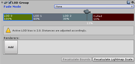 注意LOD是移动端优化几何内容非常好的一种方式,设置更高的LOD这样较低分辨率的网格就可以被使用了。