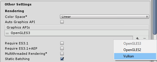 当选择要使用的API时,Unity会尝试使用最先进的。然而如果硬件平台不支持你选择的API,Unity则会尝试其他API,从而获得最广泛的支持。