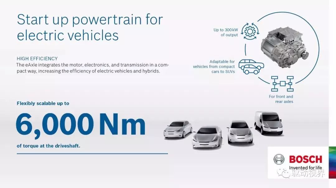 到2019年,博世新型电桥(eAxle)将进一步提升电动车的续航里程。
