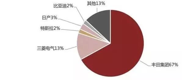 从市场份额情况看,丰田集团在2016年的数据中遥遥领先(集团主要生产电机的公司包括电装公司和爱信精机),本田集团位居第二,而同时这两大集团也都在混动领域占据全球领先地位。之后是比亚迪以及给特斯拉供货的***电机制造商富田电机。