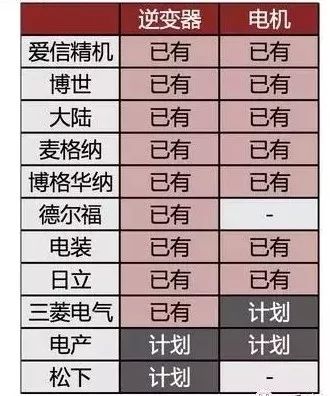 目前日本的电机企业已经相继开始对电动化所带来的趋势转变做出了应对。我们预期电装和爱信精机将会首先利用他们现有的规模优势,用较低的成本占有市场份额,而紧随其后的电产和明电舍也将迅速跟进。