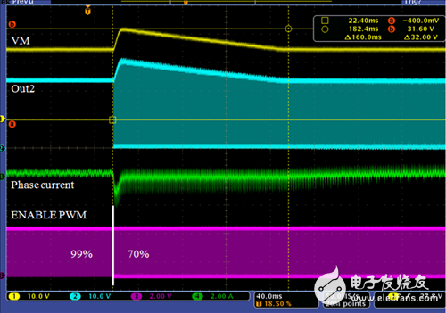 图6:当PWM占空比从100%减至50%时的VM泵升(测试包含图5上的Ts1)
