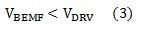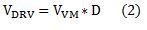 在正常驱动条件下,PWM占空比 = D,该电机将以方程式(2)所示电压VDRV驱动的速度运行。