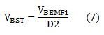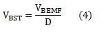 占空比刚刚减小后,电机的速度不能突然改变,因此基于新的占空比D2计算出VBST是