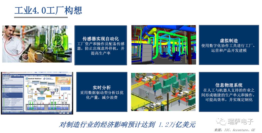 整个工业物联网会对整个制造行业产生高达1.2万亿美元的经济利益影响。