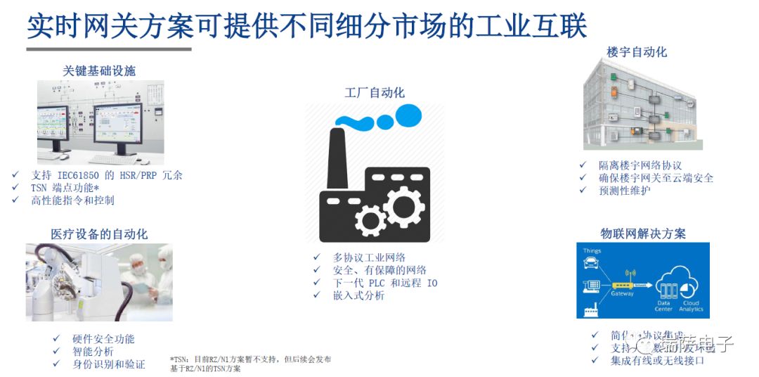 除了动态工业自动化以外,这个方案还可以关联到其他的一些领域,比方说一些关键的基础设施。从另一个角度来说,这个方案里面有很多工业以太网协议的切换,如果用到不同行业,它也有一些行业不同协议的切换。例如,楼宇自动化里面楼宇的网络协议,如何让楼宇网络协议接入物联网,这个平台也可以达成。所有协议都是软件,只是怎么把这个软件固化到我们芯片本身。当然,包括医疗设备的自动化,还有物联网的一些解决方案。所以,它的应用范围不仅仅局限在工业网络智能化。