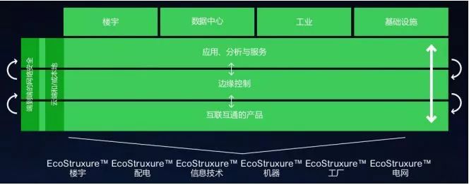 EcoStruxure物联网平台共分三层,包括互联互通的产品、边缘控制以及应用、分析与服务。