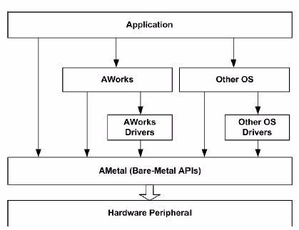 AMetal 是AWorks 的子集,它是以API 的形式提供的,但不依赖AWorks。即: