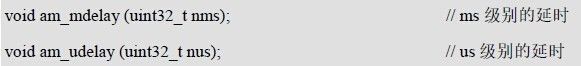 这样的延时函数好用吗?由于MCU 运行速率不同,因而导致实际的延时结果不同。如果要求不同的延时时间,则又需要不同的延时函数。显然,该延时函数不仅通用性太差,而且延时时间也不精确。幸运的是,AMetal 提供了使用定时器实现的高精度标准延时函数,主要包含了2 个延时函数,其函数原型(am_delay.h)如下: