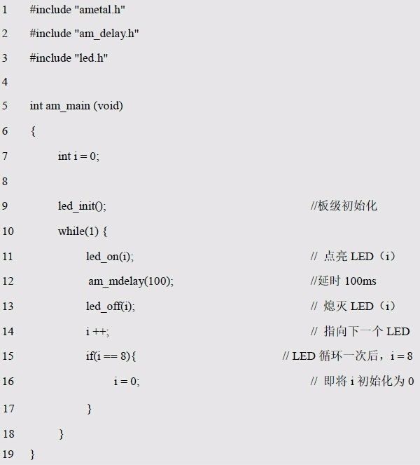程序清单4.4 单个LED 闪烁范例程序(1)