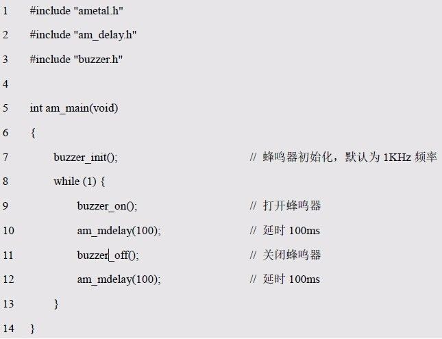 buzzer_init()会将发声频率设置为默认值:1KHz。如需修改发声频率为其它值,如:2.5KHz,则应调用发声频率设置函数,即“buzzer_freq_set(2500);”,详见程序清单4.9。