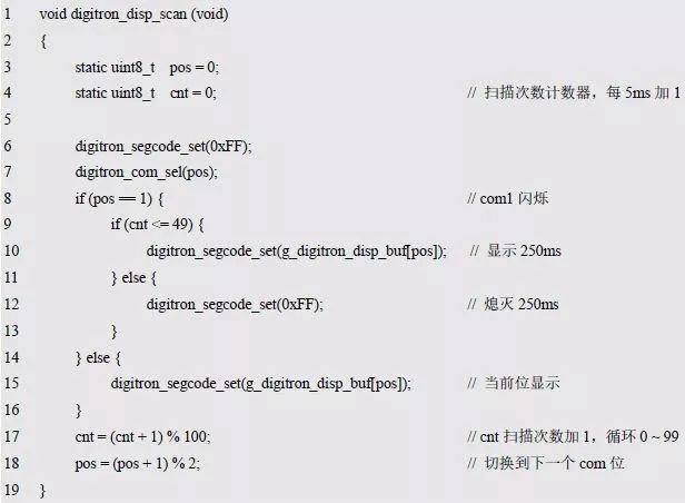 程序清单4.22 带闪烁功能的digitron_disp_scan()函数(3)