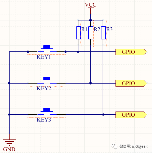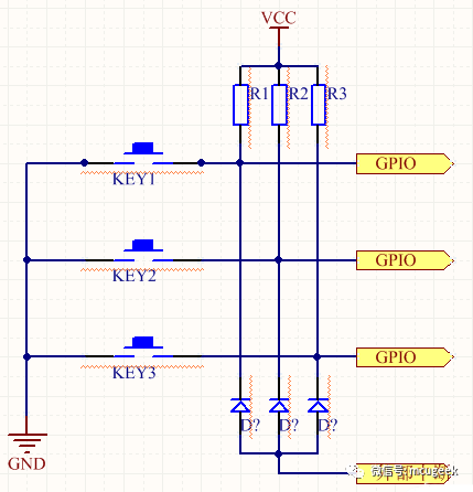 第二种,优点是能够在有限的GPIO情况下,扩展尽可能多的按键。但缺点同上,需要不停检测按键是否按下。