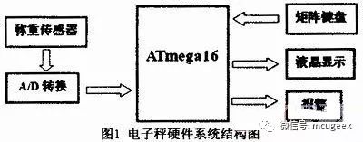 首先由称重传感器采集因压力变化而产生的电压信号,通过A/D转换器将模拟信号转换为数字信号,把数字信号送入AVR单片机,单片机做相应的处理后,得到当前物体重量的数据,并通过LCD显示出来。系统硬件结构如图1所示。