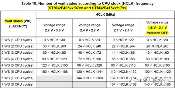 再比如STM32F4系列,它的指令预取功能在芯片复位后是默认关闭的,你可以自行打开。但明确要求关闭的场景就是芯片的供电电压低于2.1V时。