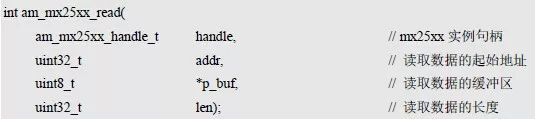 注意,spi_handle 用于区分SPI0、SPI1,mx25xx_handle 用于区分同一系统中的多个MX25xx 器件。