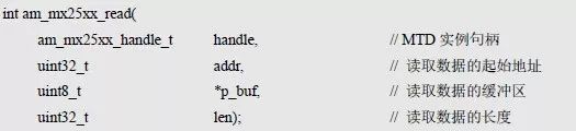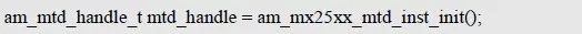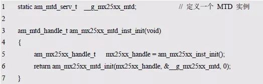 am_mx25xx_mtd_inst_init()函数无任何参数,与其相关实例和实例信息的定义均在文件内部完成,因此直接调用该函数即可获得MTD 句柄。即: