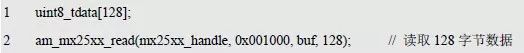 如果返回值为AM_OK,则说明读取成功,反之失败。假定从0x001000 地址开始,连续读取128 字节数据,详见程序清单6.19。