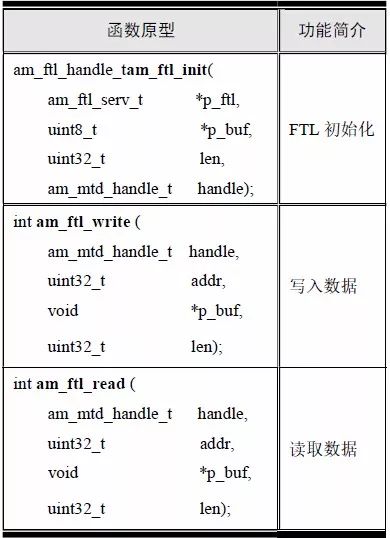 表6.8 FTL 通用接口函数(am_ftl.h)