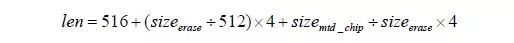 其中,sizeerase 为擦除单元的大小,对于MX25L1606,其为扇区大小,即4096。sizemtd_chip为MTD 实例的总容量。MX25L1606 对应的MTD 实例,其大小为除去保留块的总容量,若保留块为0,就是MX25L1606 的容量大小,即2M。需要的内存容量大小为: