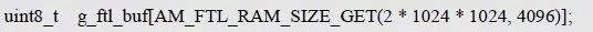 其中,g_ftl_buf 为内存空间的首地址,其作为p_buf 的实参传递,内存空间的大小(即数组元素的个数)作为len 的实参传递。