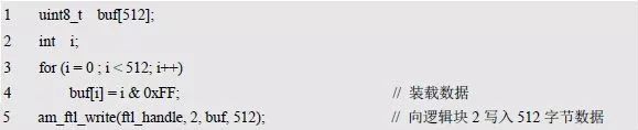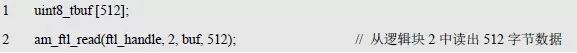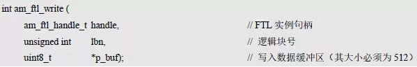 当调用FTL 通用接口时,读写数据都是以块为单位,每块数据的字节数固定为512 字节。其函数原型为: