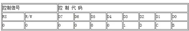 指令代码为08H~0FH。该指令控制字符、光标及闪烁的开与关,有3个状态位 D、 C、B,这3个状态位分别控制着字符、光标和闪烁的显示状态。