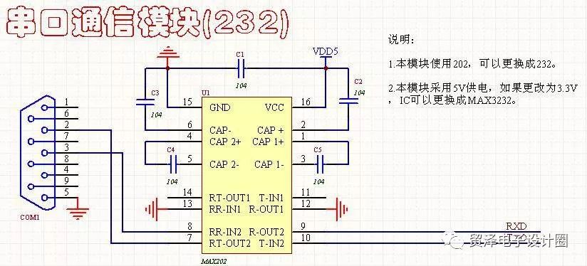 3线连接方式,对应的是母头,工作电压5V,可以使用MAX202或MAX232.