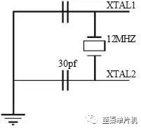 它是由一个晶振和两个瓷片电容组成的。时钟电路中的两个电容用作补偿,使得晶振更容易起振,频率更加稳定。如图2 所示。