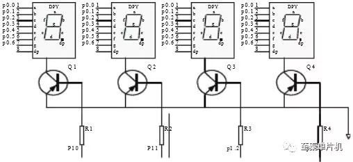 本次设计采用4 位LED 共阴极数码管显示屏做为系统的显示界面,如图4 所示。常用的LED 显示器为8 段或7 段(8 段比7 段多了一个小数点“dp”段)。每一个段对应一个发光二极管。这种显示器由共阳极和共阴极两种。如图4 所示。共阴极LED 显示器的发光二极管的阴极连接在一起,通常次共阴极接地。当某个发光二极管的阳极为高电平时,发光二极管点亮,相应的段被现实。为了使LED显示器显示不同的符号和数字,就要把不同段的发光二极管点亮,这样就要为LED 显示器提供代码,因为这些代码可使LED 相应的段发光,从而显示不同字型,因此该代码称之为段码(或称为字型代码)。7 段发光二极管在加上一个小数点,共计8 段。因此提供给LED 显示器的段码正好是1B。